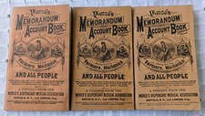3 Antique Booklet Lot Dr. Pierces Standard Medicines 1887-89 Memorandum Account