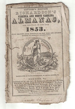 1853 Richardson's Virginia North Carolina Almanac Cottom's Edition Antique