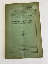 1913 U.S. Bureau of LABOR ~ PROHIBITION NIGHT WORK of CHILDREN antique booklet