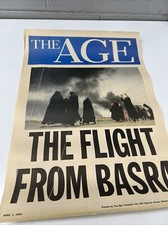 ORIGINAL NEWSPAPER SHOP POSTER CAGE ADVERTISING 2003 FLIGHT FROM BASRA IRAQ WAR