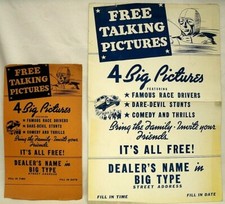 FREE TALKING PICTURES 1940'S MOVIE CINEMA DEALER STOCK POSTER ADVERTISING 2 PCS