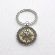 Vintage Compass Keychain Antique Look Metal Key Ring Silver Color Small