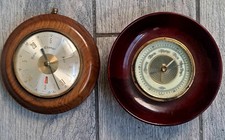 Barometer Vintage French Oak Weather Station Thermometer & Hygrometer LOT 4293