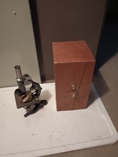 Antique Brass Microscope with Original mahogany Wood Box Early 20th Century