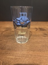 Set of 2 Vintage Antique Cars Drinking Glass 1910 Ford T & 1910 Buick Tonneau