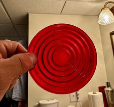 Antique 20s-30s Red Glass Stop Light Tail Light Lens 4 Inch Diameter Embossed