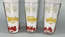 3 Hazel Atlas Vintage Antique Car frosted drink glass set