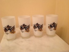 Vintage ANTIQUE CAR ETCHED MILK GLASS HIGHBALL COCKTAIL GLASSES SET OF 4.