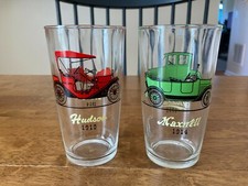Vintage Antique Car Drinking Glass Set Studebaker Maxwell Stutz Hudson