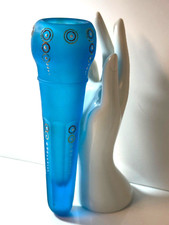 ANTIQUE FROSTED TURQUOISE BLUE 8"GLASS/AUTO/CAR FLOWER VASE -HANDPAINTED DESIGN