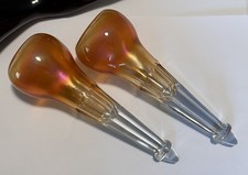 Pair of Antique Car Vases Marigold Carnival Glass to Clear Model A T Iridescent