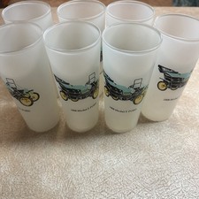 (7) Vintage 1908 Model-T Ford Antique Car Frosted Ice Tea Glass