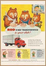 Reo Motors Trucks Retro Mini Poster B5 Size Replica Advertising Bear Illustratio