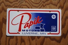 Papik Motors Dealer Advertising Sign License Plate LUVERNE Minnesota GM