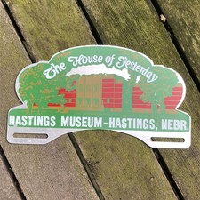 1950s Original HASTINGS NEBRASKA Auto License Plate Topper NE Advertising Sign