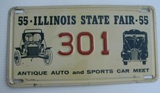 ILLINOIS 1955 HISTORIC ANTIQUE LICENSE PLATE " 301 " ST FAIR HORSELESS CARRIAGE