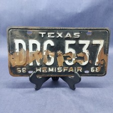 Vintage 1968 Texas Hemisfair License Plate Antique Tag DRG 537 Patina Sign