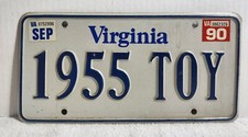 Vintage 1990 Virginia Vanity License Plate " 1955 TOY "