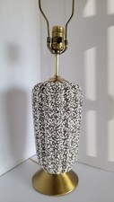 Vtg Mid Century Modern Grooved Taupe Ceramic with White Raised Speckle Lamp