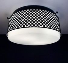 Vintage 1950s 1960s Mid Century Modern Flush VIRDEN Ceiling Light Black & White