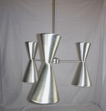 Vtg Mid Century Modern Litecraft 3 Arm Hourglass Cone Aluminum Light Fixture