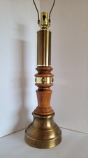 Vtg Mid Century Wood & Brass Table Lamp 29.5"