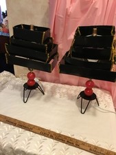 Vintage MCM Mid-Century Modern Venetian Blind Red & Black Lamp Tripod Legs