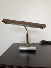 Vintage Mid Century Gooseneck Wood Fluorescent Desk Lamp Art Deco