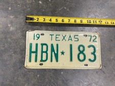 Vintage 1972 72 Texas License Plate Antique HBN 183 Tag Wall Bar Art Man Cave