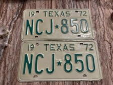 1972 72 Texas License Plate Pair Set VINTAGE ANTIQUE CLASSIC car FKM chevy Tag