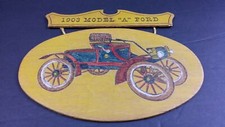 WOODEN FORD 1903 MODEL A WALL PLAQUE 9" X 9" CHILD TOY CRAYON COLORED Vintage