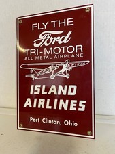 Island Airlines Ohio Ford Tri-Motor Genuine Porcelain Sign, Advertising Man Cave