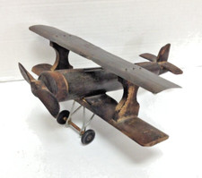 Vintage Collectable BiPlane airplane metal wood propeller shelf desk model toy