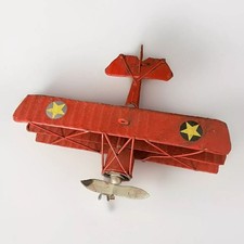 Vintage Style WWI Metal Tri-Plane Aircraft Home Child Decor Toy Red 6”