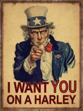 HARLEY DAVIDSON UNCLE SAM I WANT YOU HEAVY DUTY USA MADE METAL ADVERTISING SIGN