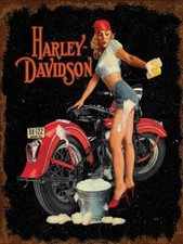 HARLEY DAVIDSON HOT GIRL WASHES BIKE HEAVY DUTY USA MADE METAL ADVERTISING SIGN