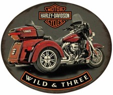 HARLEY DAVIDSON CYCLE WILD AND THREE HEAVY DUTY USA MADE METAL ADVERTISING SIGN