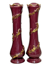 Lamp Bases Pair Mid Century Modern Ceramic Pottery Purple Gold Retro Parts