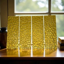 Vintage MCM Textured Amber Glass Panels For Lamp Light Replacement Part 1974