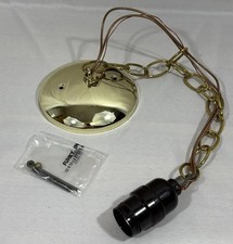 Vintage NOS Mid Century Gold Metal Pendant Ceiling Light Mount Chain & Socket