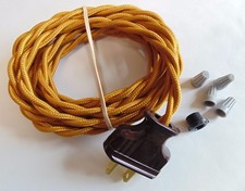 GOLD BRAIDED CLOTH COVERED LAMP WIRE TIFFANY, HANDEL, LEADED TABLE FLOOR LAMP