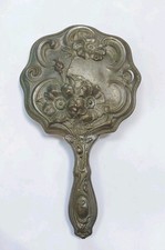Antique Victorian Art Nouveau Cast Metal Hand Mirror 11”