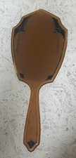 Antique Hand Held 12” Wooden Mirror with Beveled Glass