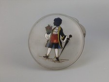 Vintage Antique Hand Painted Glass Pill Trinket Box With Mirror & Clasp Intact