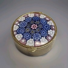 Millefiori Glass Lid Pill Box Vintage Italy #P
