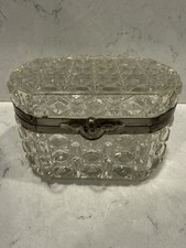 Vintage Oval Cut Glass Button Hinged Lidded Trinket/Vanity/Decorative Box