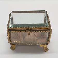 Antique French Ormolu Trinket/Jewellery Box Bevelled Glass Silk Lining on Inside