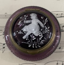 Rare Antique French Purple Glass Hand Painted Enameled Box Mary Gregory c1900