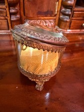 Vintage Golden Glass Lidded Box Clear Glass & Brass Metal Storage Jewelry and...