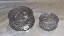 2 Vintage Clear Glass Lidded Dressing Table Trinket /Pin Dishes CUTE!!